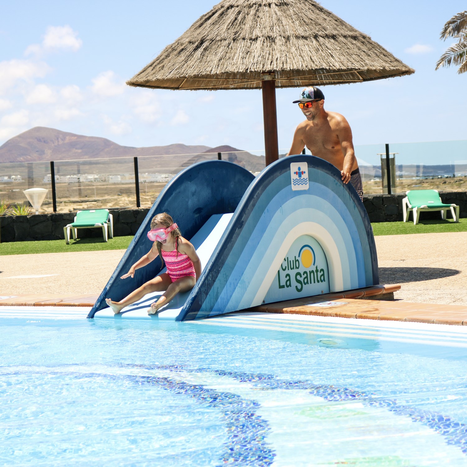 Families with children typically choose sun loungers next to the separate, heated children's pool for easy supervision. For older kids, there's plenty of fun to be had with the 1-metre diving board in the iconic round pool with the Club La Santa logo on the bottom.