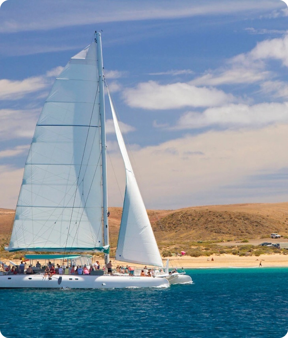 Segeln Sie an Bord des luxuriösen Katamarans Catlanza auf kristallklarem Wasser bis an die traumhaften Strände von Papagayo. Wir beginnen die Tour im Club La Santa, von wo aus wir zum luxuriösen Hafen von Puerto Calero fahren. Dort wird unsere Crew Sie an Bord des Katamarans begrüßen. Es gibt eine offene Bar mit Drinks und frischem Obst und Sie können sich einfach zurücklehnen und den fantastischen Ausblick genießen. Sie würden gerne einmal das Segeln ausprobieren? Der Kapitän kann Ihnen auch eine Einführung geben.