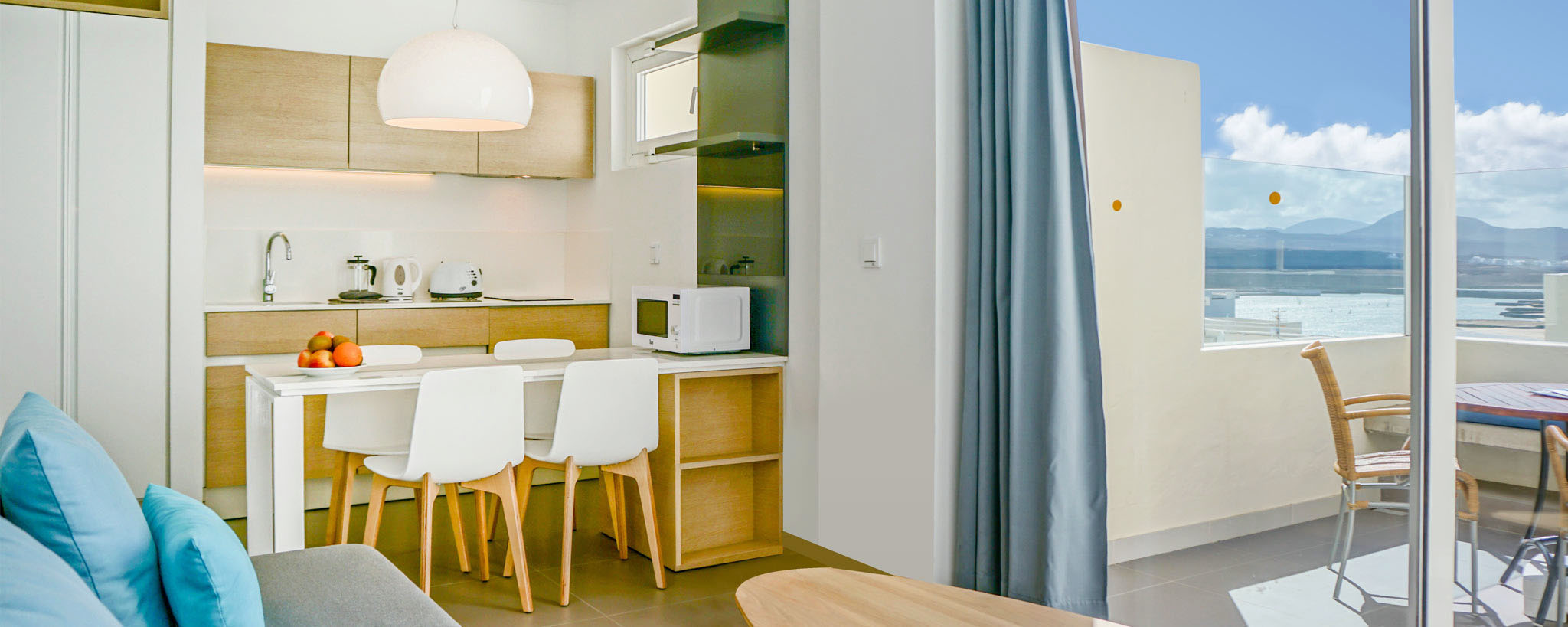 This apartment offers one bedroom, a living room with kitchen, a bathroom, and a private terrace with views of the countryside. With 2 single beds in the bedroom and a sofa bed in the living room, the apartment can sleep up to 3 adults and 1 child under 15 years old.