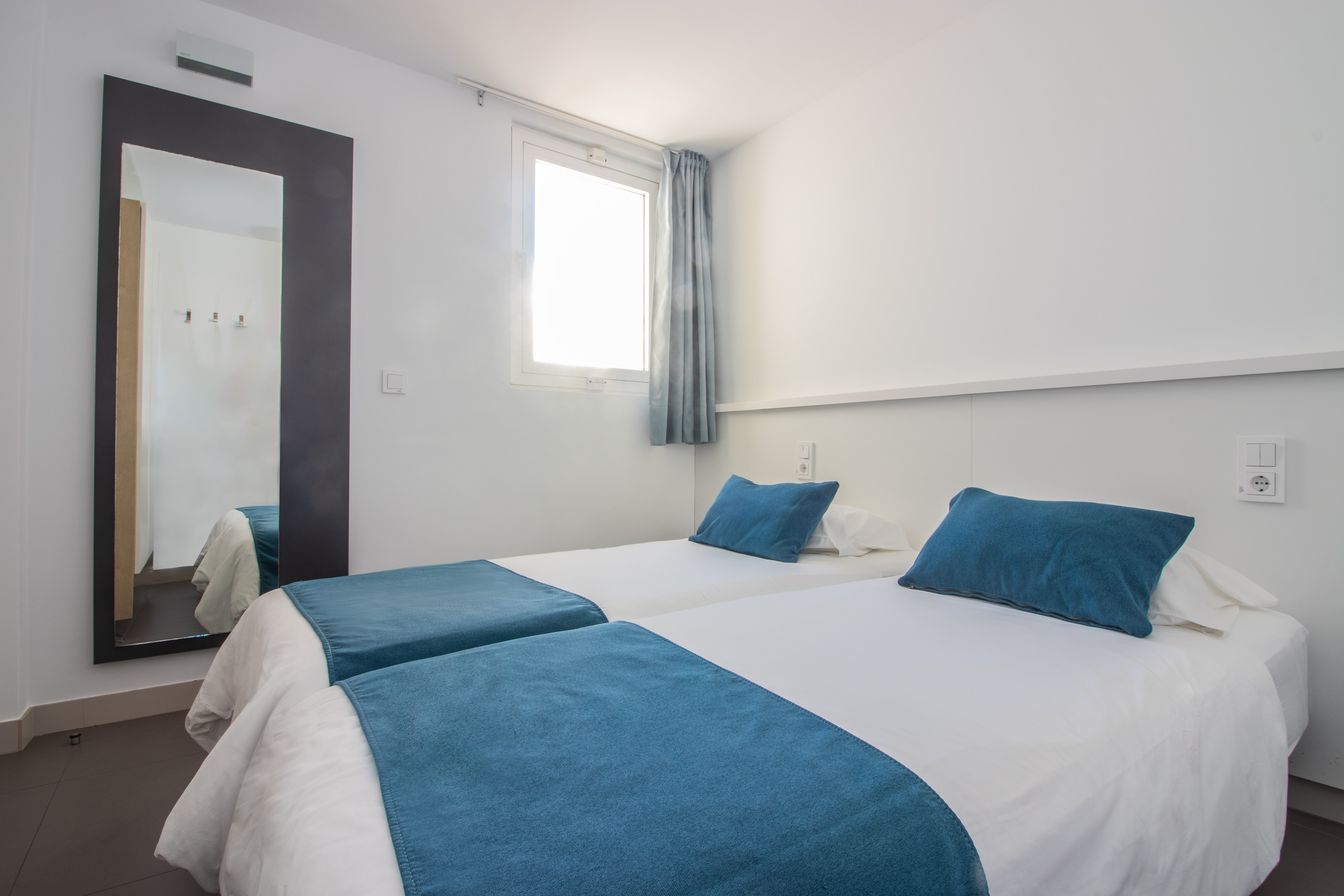 Comfort 2 lejligheden byder på to soveværelser, en opholdsstue med køkken samt et badeværelse og en terrasse. Med to enkeltsenge i hvert soveværelse og en sovesofa i stuen, kan lejligheden benyttes af op til 6 voksne.