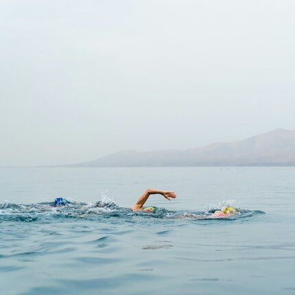 "Simpelthen en fantastisk svømmeoplevelse" Uanset om du er fritidssvømmer eller professionel atlet, vil du sætte pris på denne morgensvømmesession langs stranden, hvor Ironman Lanzarote finder sted hvert år. Støttet af en erfaren kajakroer kan du vælge at svømme, i dit eget tempo, alt fra 500m til 3.800m. Vandet er krystalklart, roligt og 100 % sikkert for svømmere. Min. 17ºC i februar, max. 23ºC i august. Der er en café i nærheden for dem, der er tidligt ude af vandet.