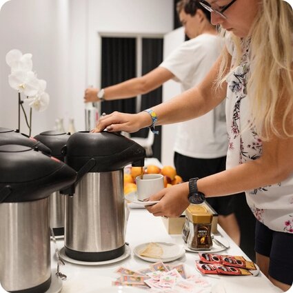 - Lassen Sie sich in einem der vier Restaurants des Club La Santa verwöhnen oder bestellen Sie unseren Catering-Service für die Konferenzräume und werfen Sie einen Blick auf unsere Karte für die Kaffeepause.