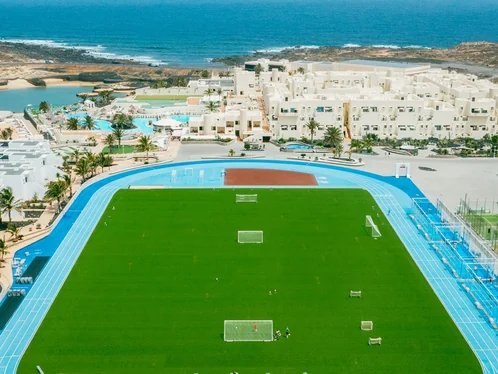 In der Mitte des Stadions wurde der Fußballplatz des Club La Santa mit neuem Kunstrasen von höchster Qualität ausgestattet. Der Kunstrasen ist eine nachhaltige Wahl, die äußerst langlebig ist, nur minimale Pflege erfordert und ohne Füllmaterial auskommt. Die Struktur der Fasern und eine 10 mm dicke Schaumstoffunterlage sorgen für ein optimales und naturgetreues Spielerlebnis mit geringer Reibung und perfektem Ballaufprall. Einfach einen Ball holen und den neuen Platz ausprobieren!