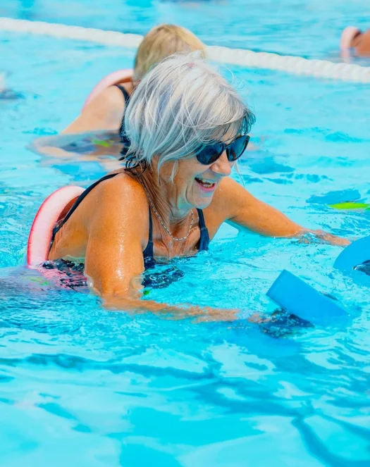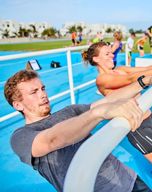 Funktionelles schwimm-workout Dieser Kurs ist perfekt für alle, die gerne schwimmen und ihre allgemeine Fitness verbessern möchten. Dieser Kurs kombiniert eine Vielzahl von hochintensiven Übungen im und außerhalb des Wassers.