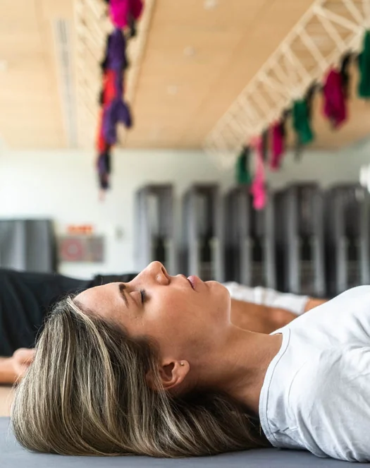Aerial relaxation In diesem Kurs liegen Sie in unseren Seidenhängenmatten und werden in einen Zustand tiefer geistiger und körperlicher Entspannung geführt.