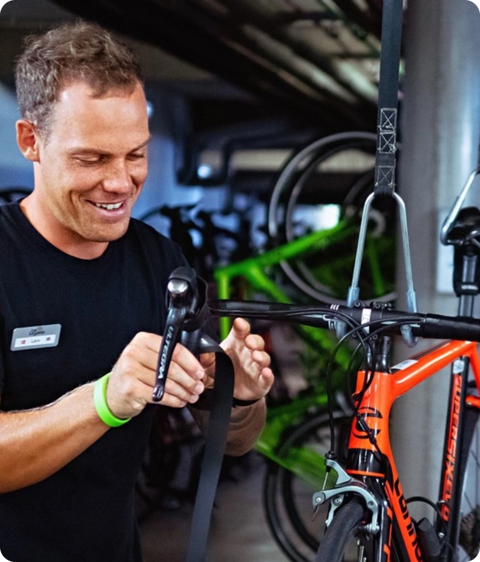 Nuestro equipo de mecánicos de bicicletas profesionales está a tu disposición para darle a tu bicicleta una revisión de seguridad completa, para ayudarte a montar y a desmontar tu bicicleta, ajustar los cambios y arreglar las ruedas. Recibirás una factura para la mano de obra y los repuestos cuando recojas la bicicleta.