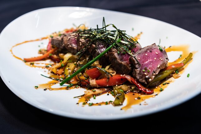 El menú internacional de La Plaza ofrece carnes de la más alta calidad, pescado fresco y pizzas hechas con los ingredientes más frescos y locales.