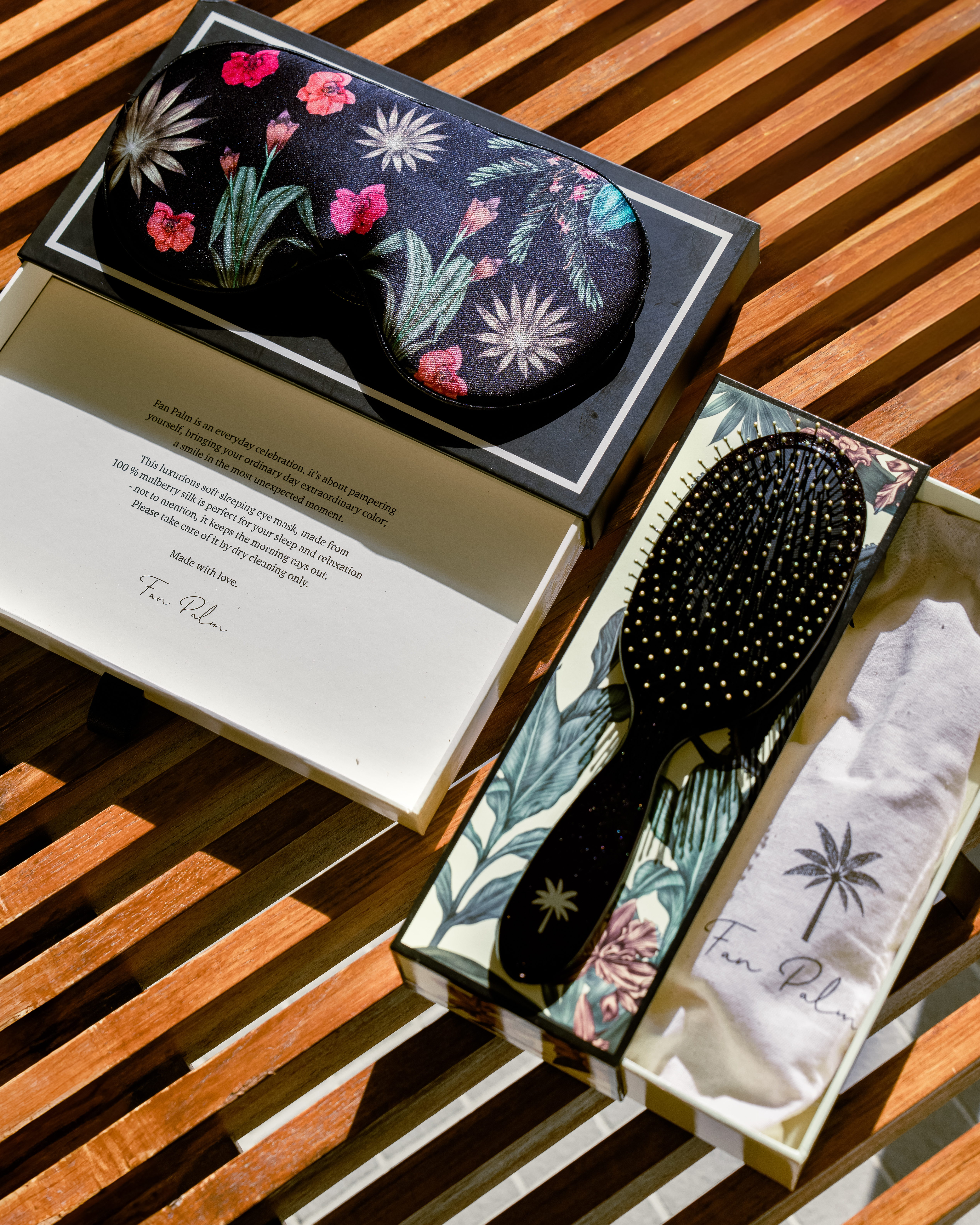 Fan Palm is a lifestyle brand, a colourful universe with the most gorgeous hairbrushes & plush silk sleeping eye masks, all in the beautiful colours of the season.